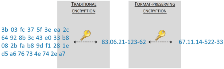 Vandaar dus de nood aan een techniek die rijksregisternummers omzet in pseudoniemen met dezelfde structuur, en terug. Dit is onmogelijk met klassieke vercijfering, maar wordt wel mogelijk m.b.v. ofwel data tokenization, ofwel format-preserving encryption.