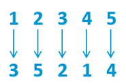 In essentie is FPE een permutatie, ofwel een herordening zoals geïllustreerd in onderstaande figuur waarbij de nummers 1 tot 5 herordend worden. De permutatie wordt bepaald door de FPE sleutel en de tweak. De sleutel is geheim, de tweak is een vrij te kiezen nummer (byte array) dat publiek gekend mag zijn en dat key management vereenvoudigd [1]. Hoe kunnen we op basis hiervan rijksregisternummers omzetten in pseudoniemen met de structuur van een rijksregisternummer?