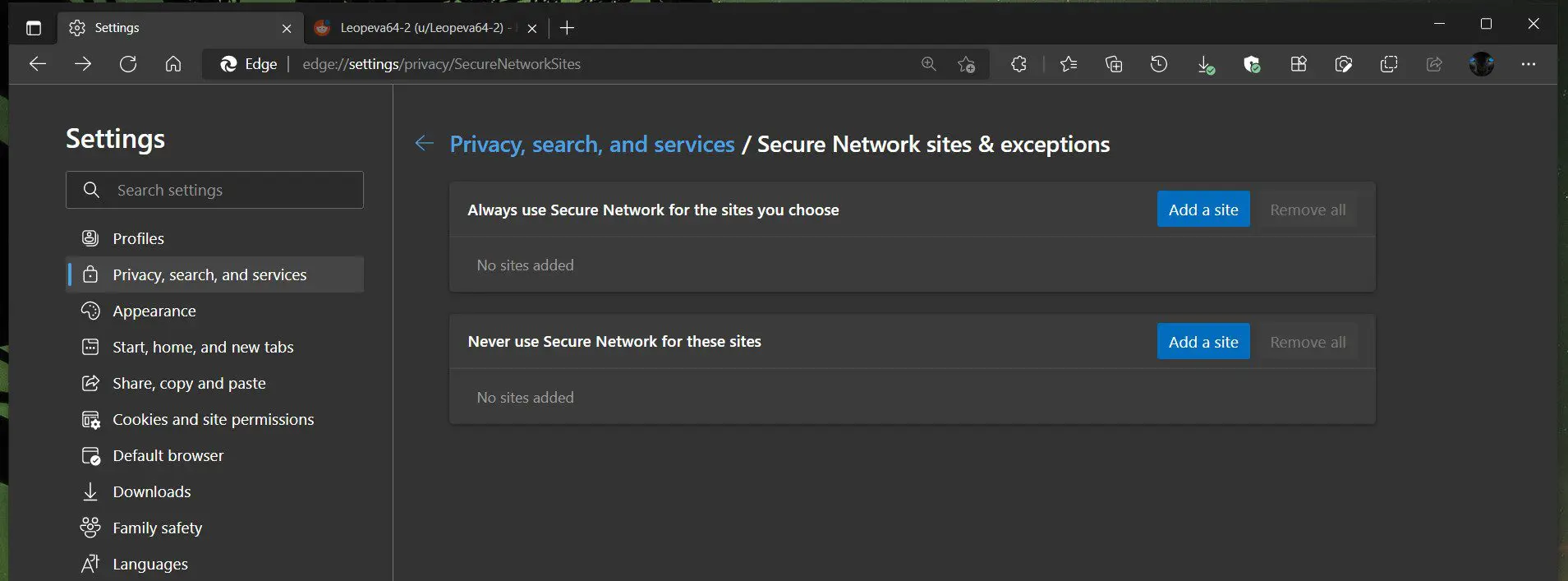 - Beperkt aantal websites: in een specifieke lijst binnen Edge kan je websites toevoegen waar je altijd een VPN wil gebruiken.
