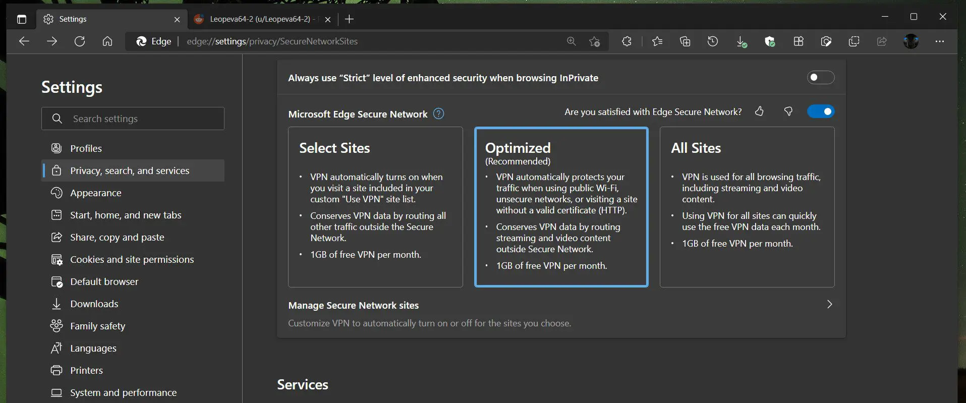 Bijna een jaar geleden startte Microsoft met het testen van een VPN-oplossing in hun Edge-browser. Het wil hiermee de privacy versterken van online bezoekers, althans tot een volume van 1 GB. Het gaat om een samenwerking met Cloudflare. Al die tijd verscheen er een ‘preview’-label bij de testfunctie die Edge bèta-testers vandaag proefdraaien. Sinds een week is dat label verdwenen, dat mogelijk betekent dat de VPN klaar is voor het grote publiek.