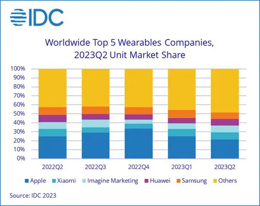 Daartegenover staat de veel uitgebreidere markt van andere wearables zoals oortjes en smartwatches. Die groeide in Q2 van dit jaar met 8,5 procent. De algemene marktwaarde daalde wel, door lagere prijzen en verschillende kortingen bij retailers.