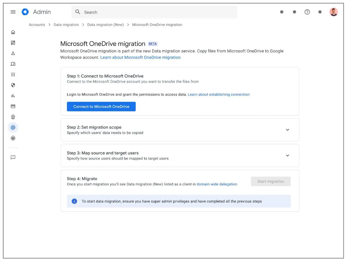 Overstappen van cloudomgeving gaat vaak gepaard met heel wat gedoe om alle bestanden correct overgezet te krijgen. Google maakt het eenvoudiger voor organisaties die de oversteek van Microsoft maken, schrijft het bedrijf in een blog. Workspace wordt voorzien van een nieuwe migratietool voor admins om bestanden vanuit OneDrive over te zetten naar de Google-cloud.