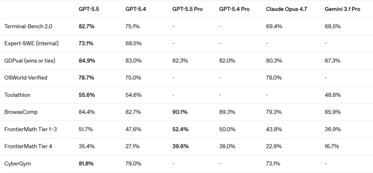 Op het vlak van agentic codering scoort het nieuwe model 82,7 procent op Terminal-Bench 2.0, tegenover 75,1 procent voor GPT-5.4. Op Expert-SWE, een interne evaluatie voor langdurige codetaken met een gemiddelde uitvoeringstijd van twintig uur voor menselijke experts, overtreft GPT-5.5 zijn voorganger eveneens. Opvallend is dat het model deze betere resultaten haalt met minder tokens, waardoor het ook efficiënter is in gebruik.