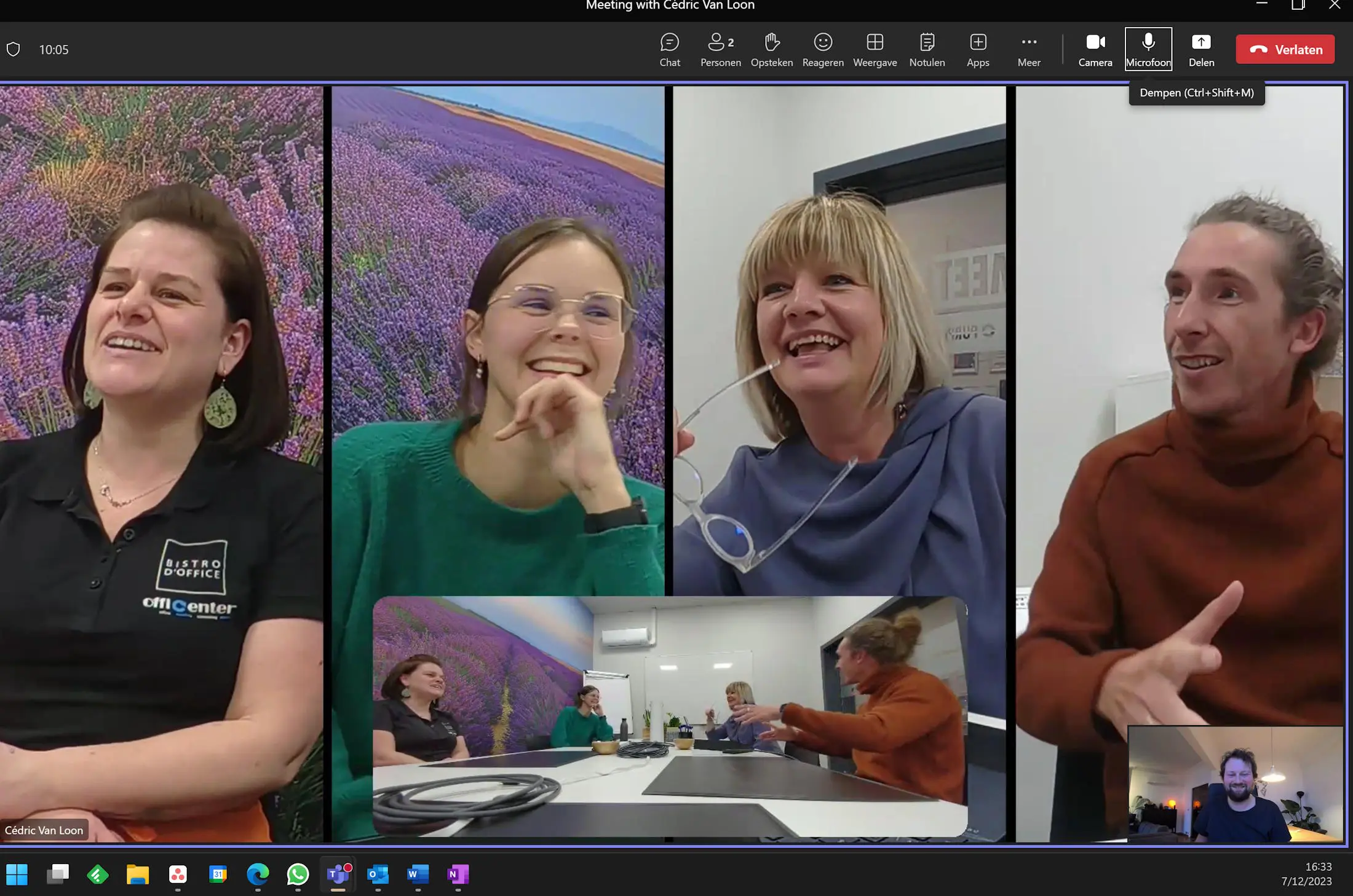 In een ideaal scenario is iedereen fysiek aanwezig op een meeting op kantoor, maar in de praktijk is dat zelden zo. Voor de aanwezigen op kantoor is er geen probleem: zij zien alle deelnemers fysiek rond de tafel en moeten maar beperkt met een paar deelnemers virtueel op het scherm rekening houden.