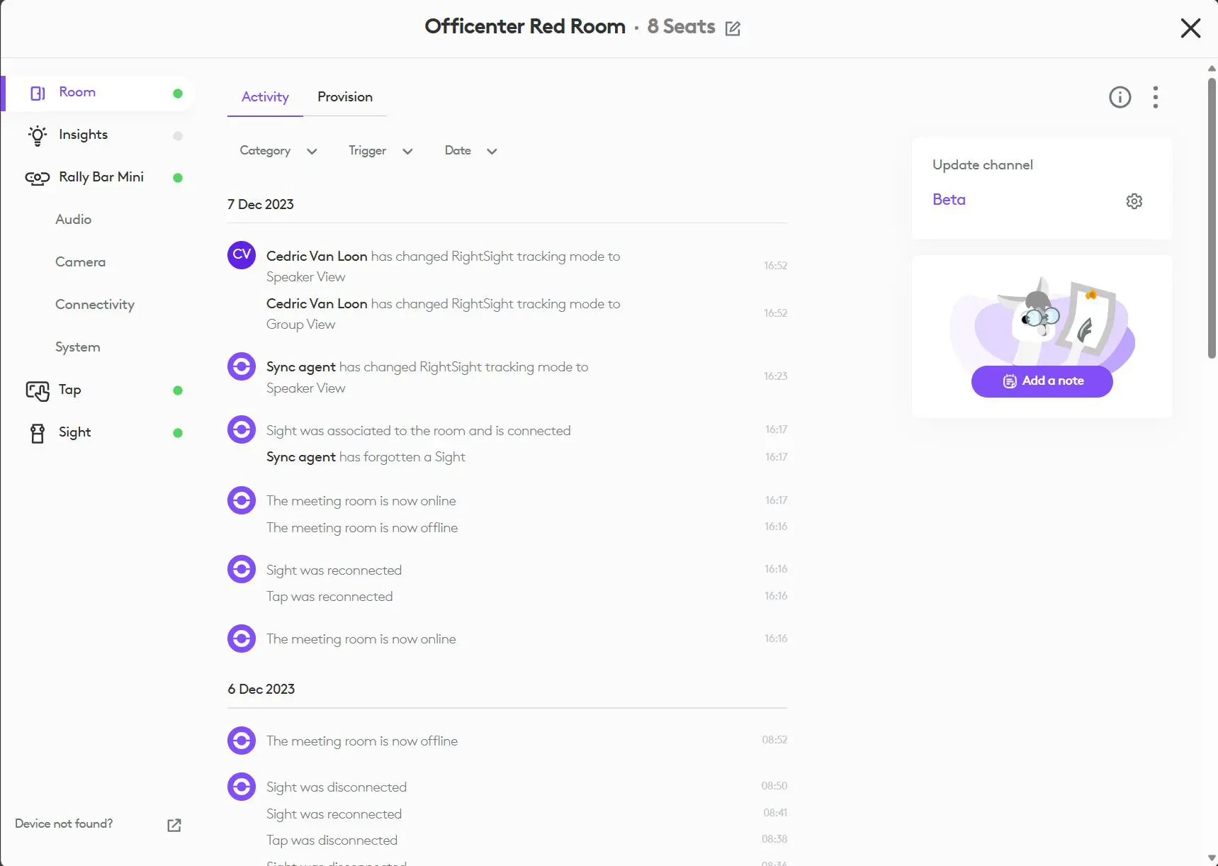 Logitech Sync heeft weinig met de Logitech Sight te maken, maar tegelijk kan het niet ontbreken in deze test omdat IT-teams voornamelijk met deze tool zullen werken. Vanaf dit cloudplatform kan je handig alle vergaderruimtes met Logitech hardware monitoren vanop afstand.